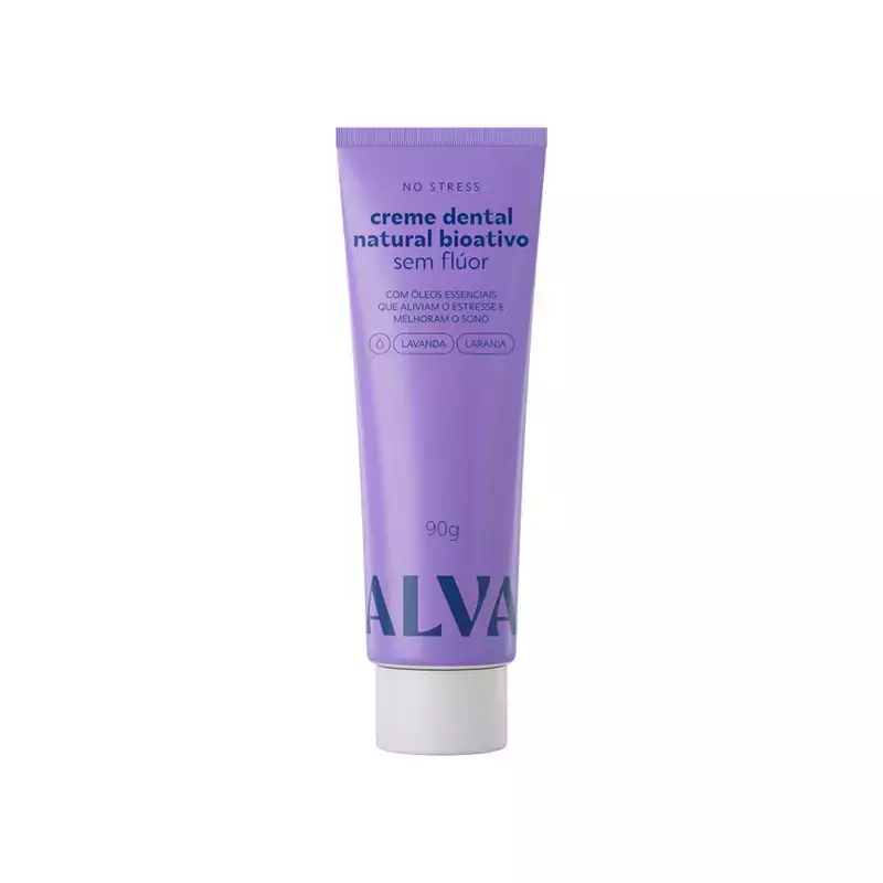 Pasta de Dente NO STRESS: a fusão dos óleos essenciais de lavanda e laranja doce traz relaxamento, bom humor, alívio do estresse diário e melhora do sono.